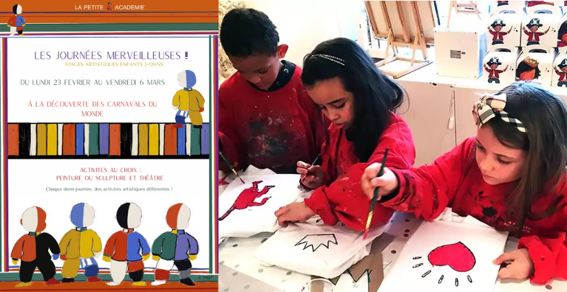 Pendant les vacances, direction La Petite Académie, Diane propose aux enfants, à la demi-journée, la journée ou la semaine des stages artistiques et créatif.